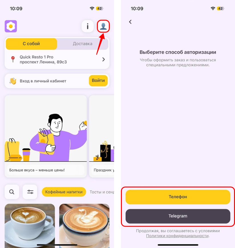 Для авторизации в приложении для гостей вы можете использовать номер телефона или мессенджер Telegram. Это даст вам возможность оформлять заказы и получать специальные предложения.