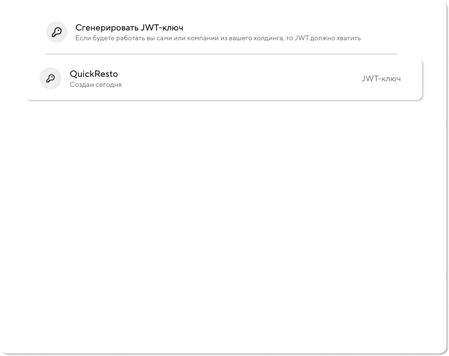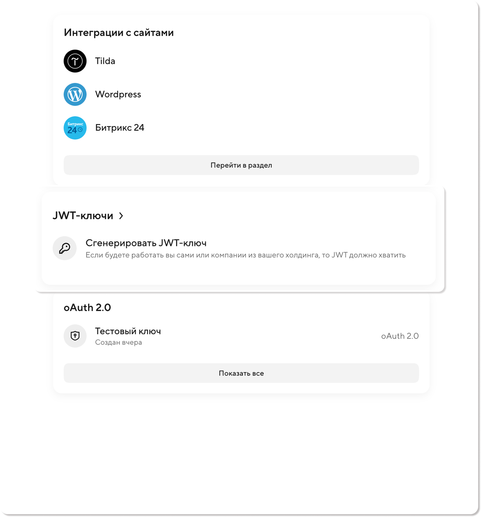 2) В открывшимся окне в блоке JWT-ключи нажмите Сгенерировать JWT-ключ.