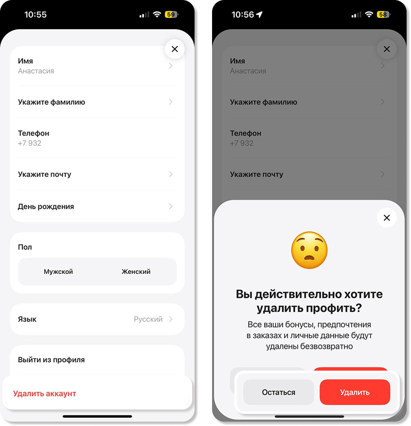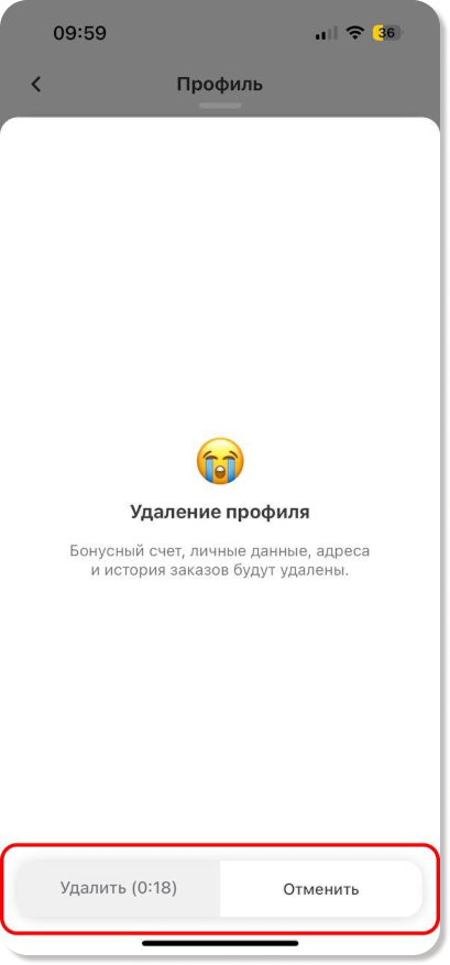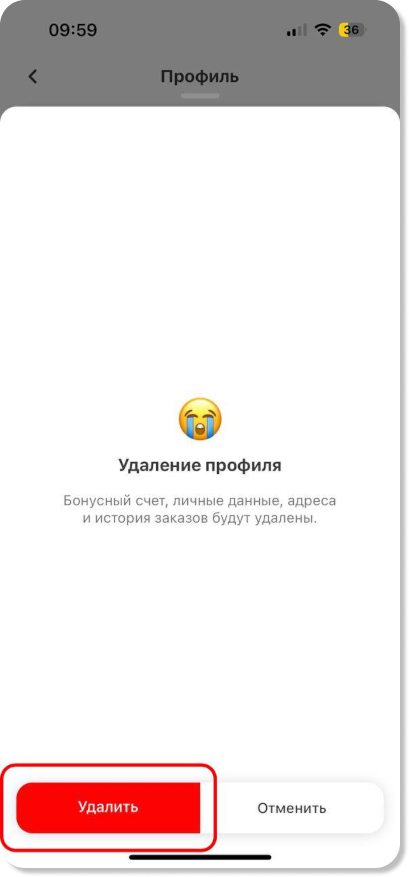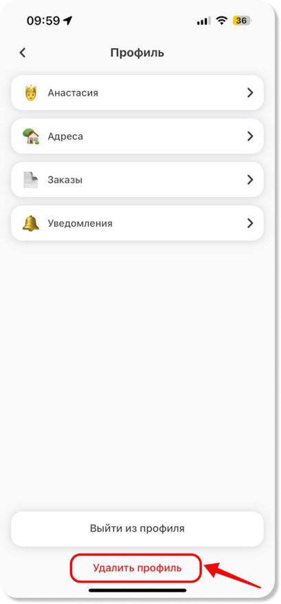 Удаление аккаунта в приложении для гостей
