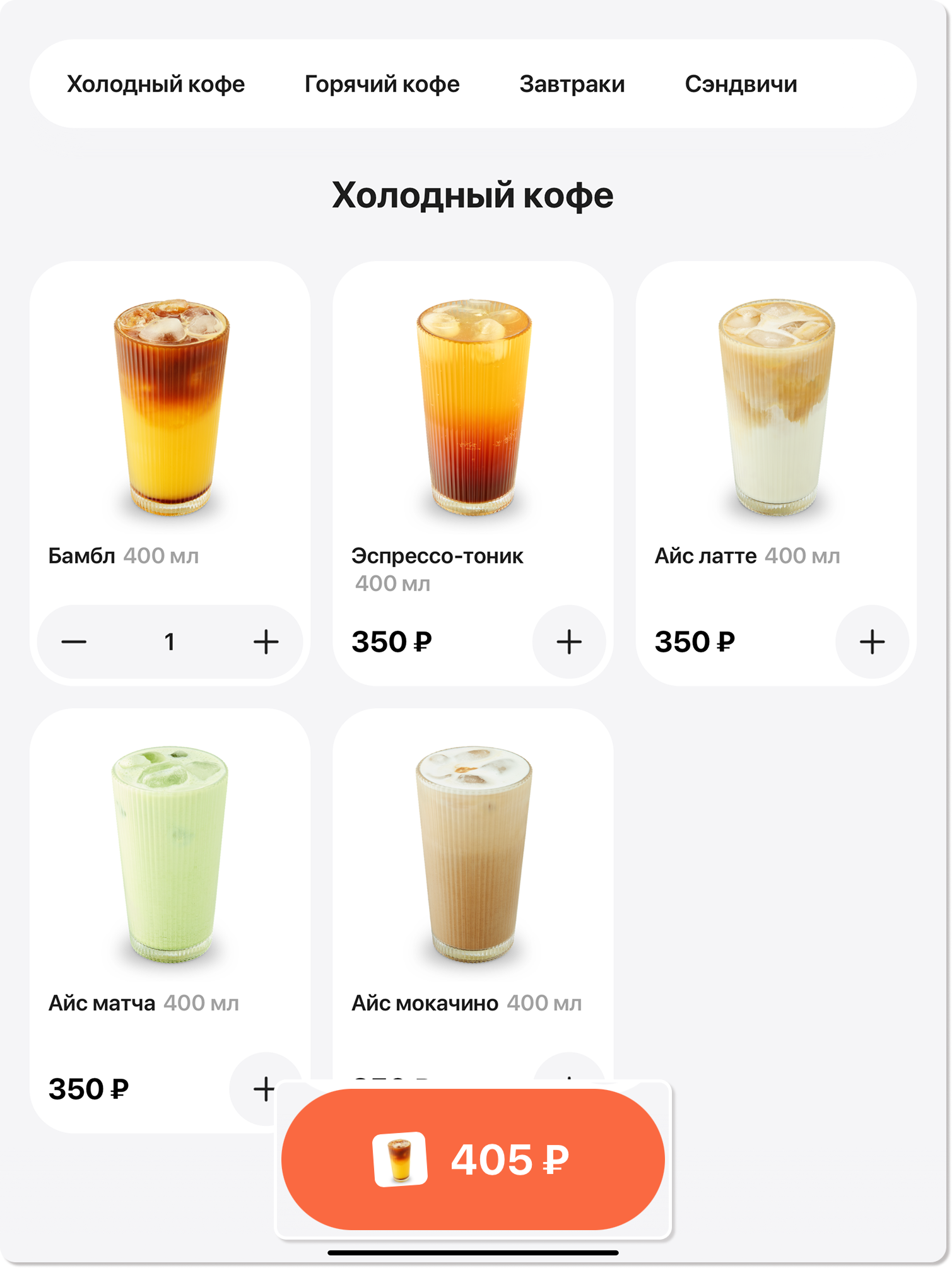 3. Добавьте все необходимые позиции. Затем нажмите на кнопку Корзина в нижней части экрана.