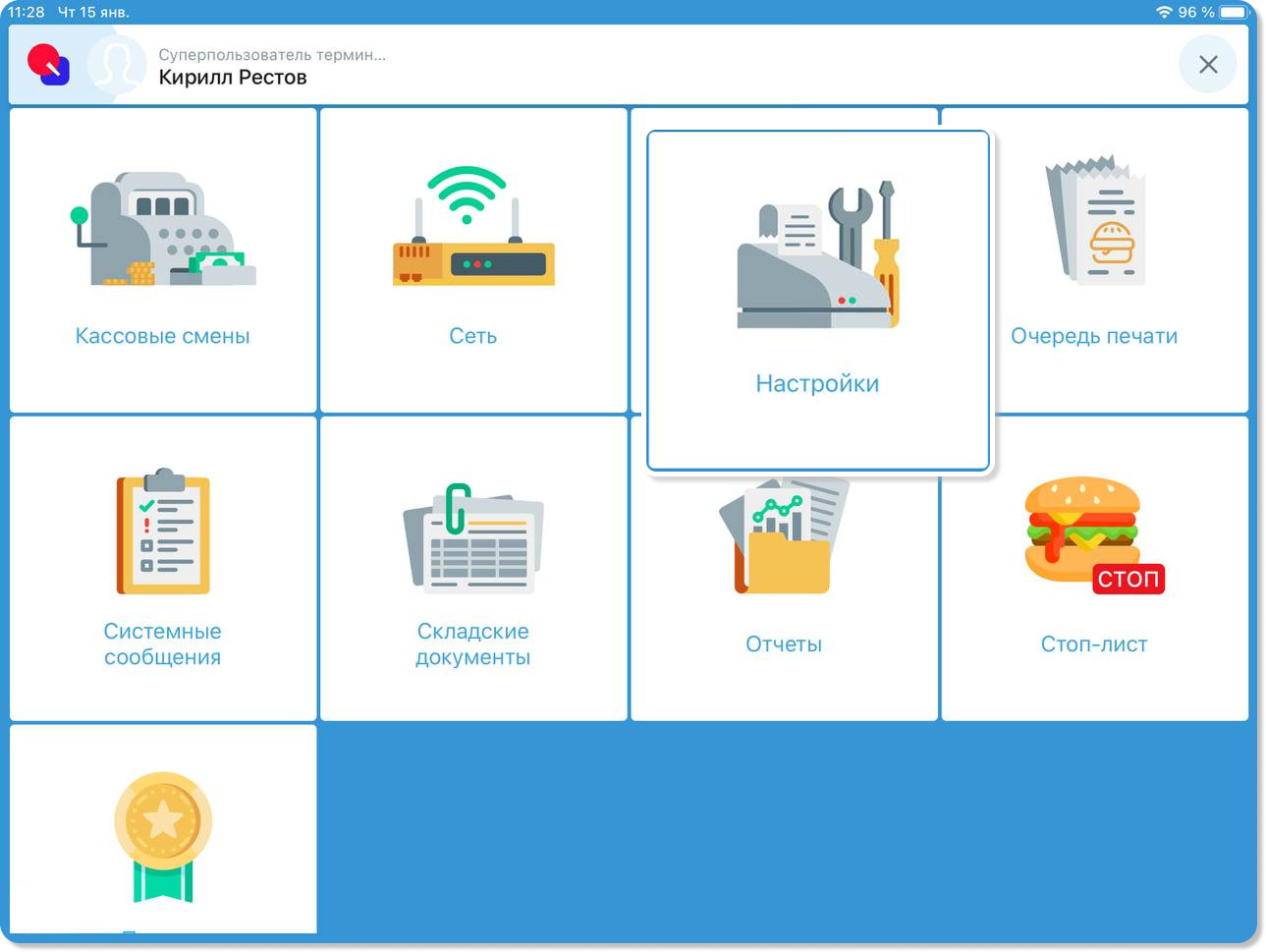 Примечание! Функционал будет ограничен, пока не будет настроен банковский терминал.