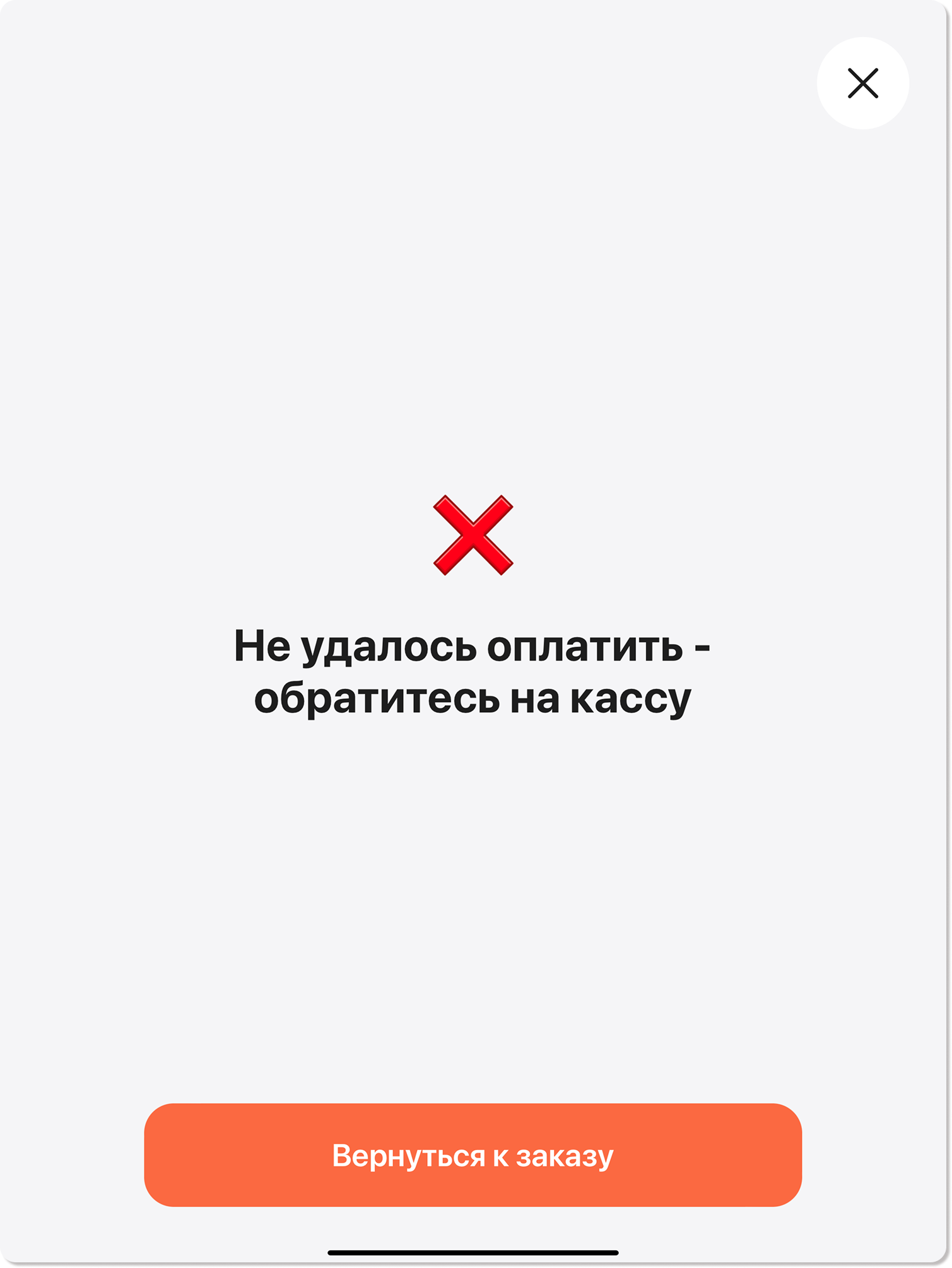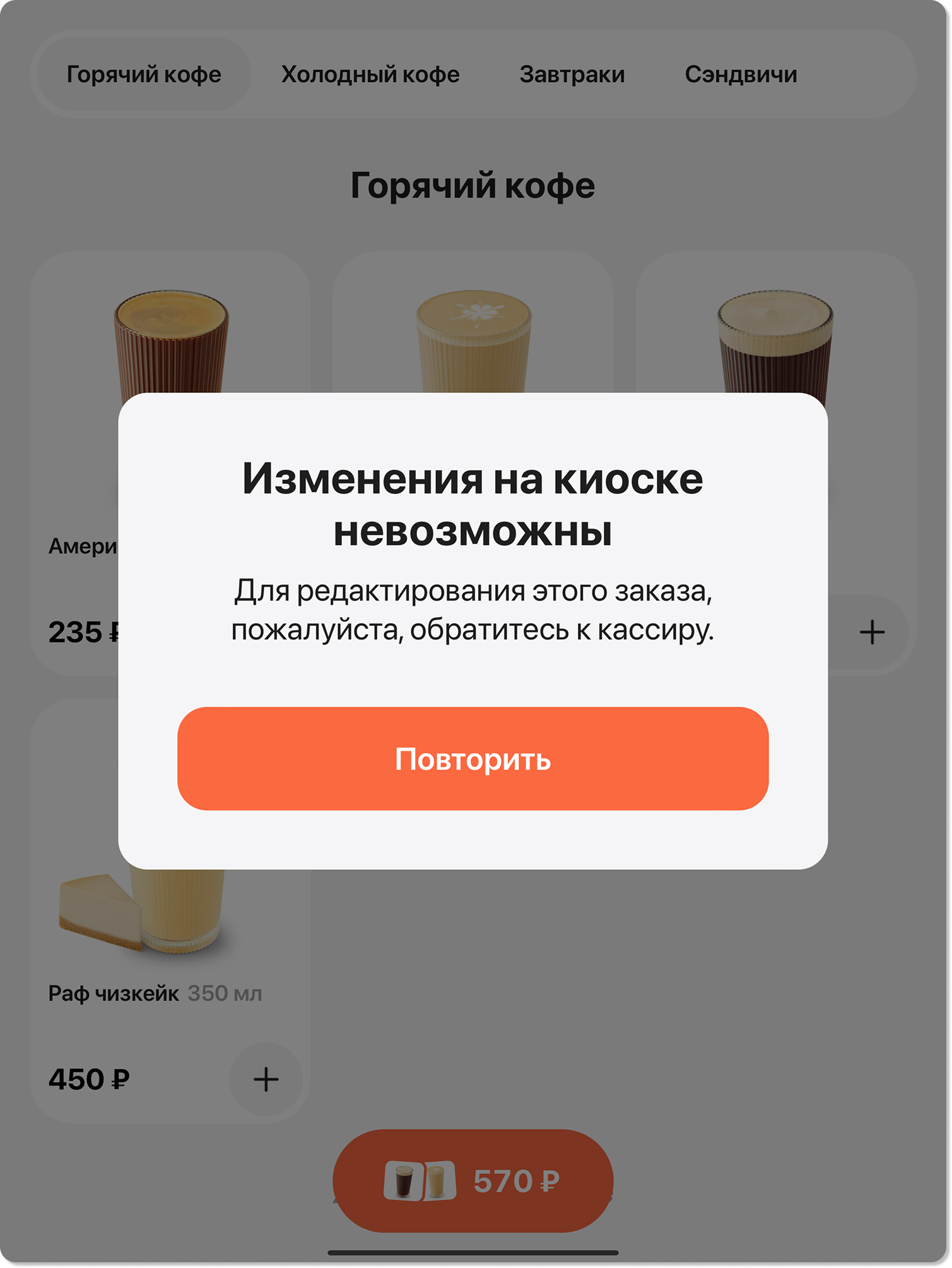 Затем можно повторно провести оплату заказа через киоск самообслуживания.