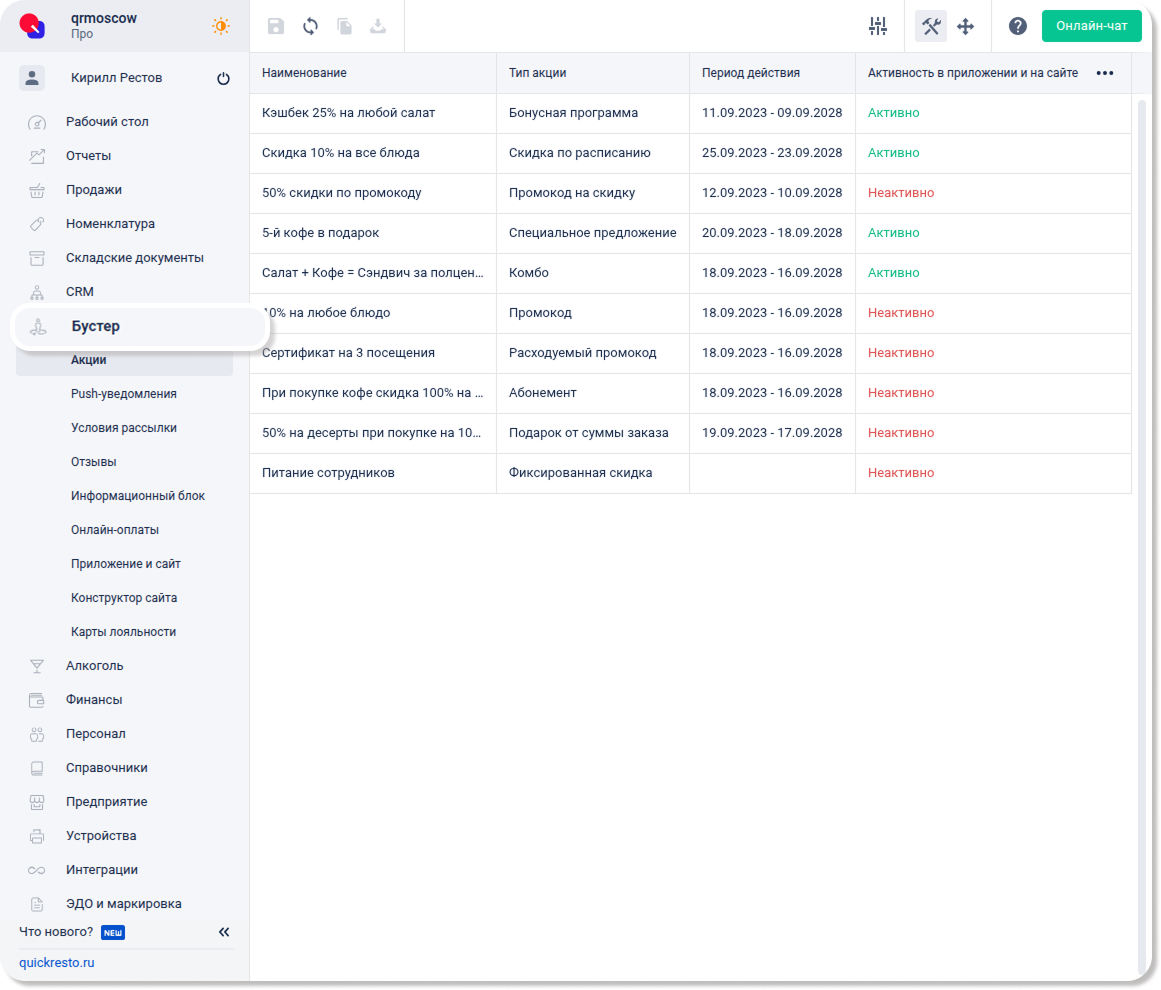 - Получение уведомлений о скидках, акциях, бонусных программах и событиях в заведении.