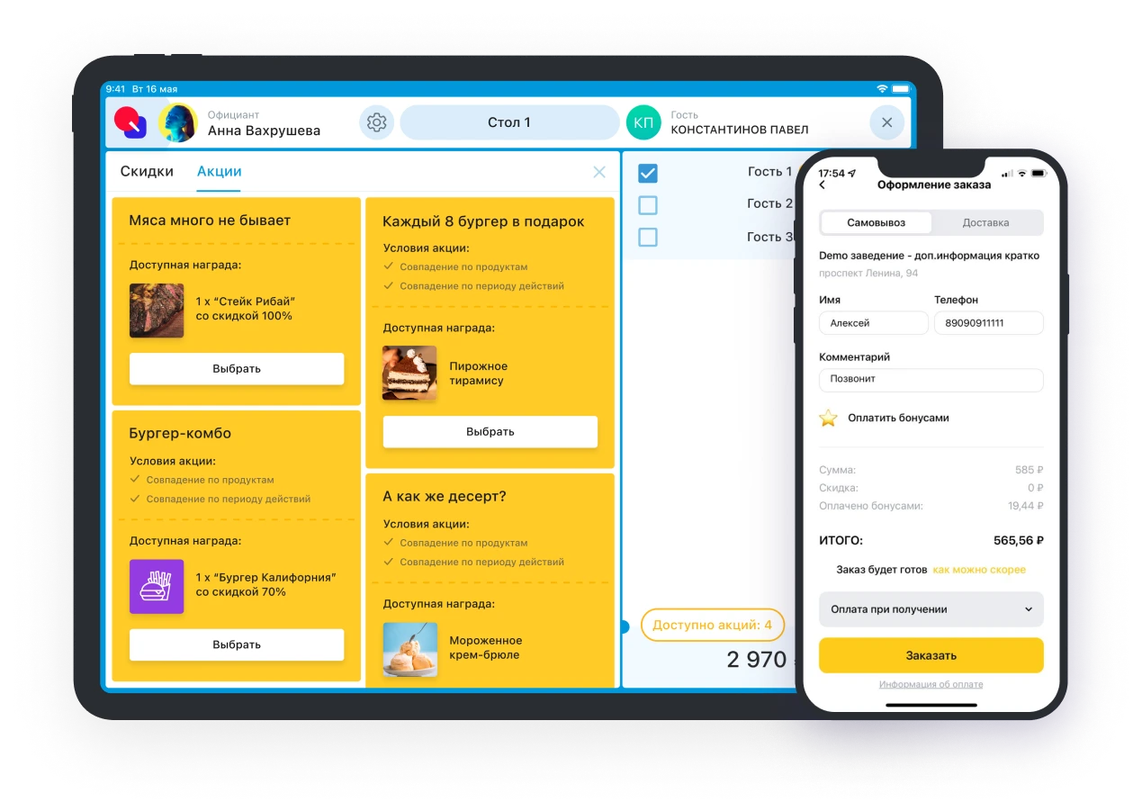 Встроенная CRM помогает собирать информацию о гостях: средний чек, частота визитов, любимые позиции. Вы можете отправлять персонализированные предложения, возвращать клиентов и запускать точные акции. Всё это — без отдельной маркетинговой платформы.