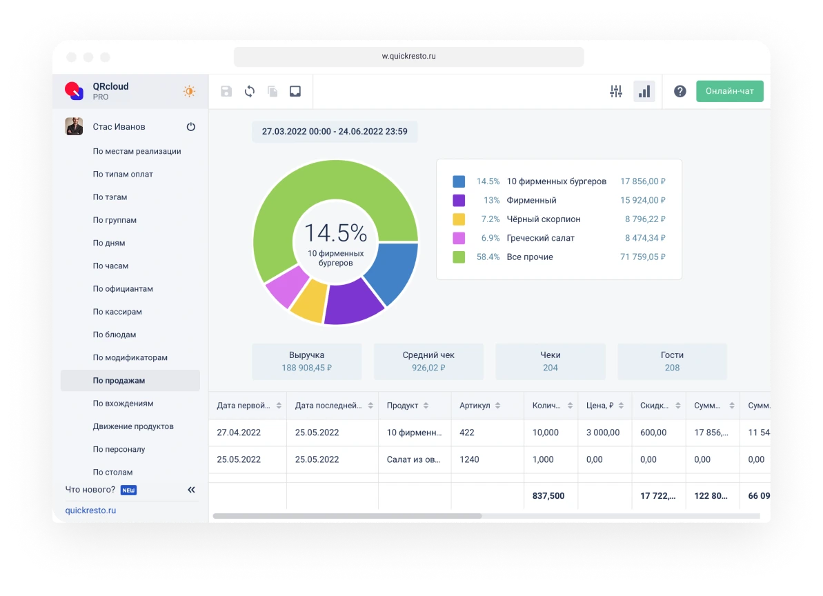 Схема зала, заказы, бонусы в CRM, чеки, 3 типа оплат