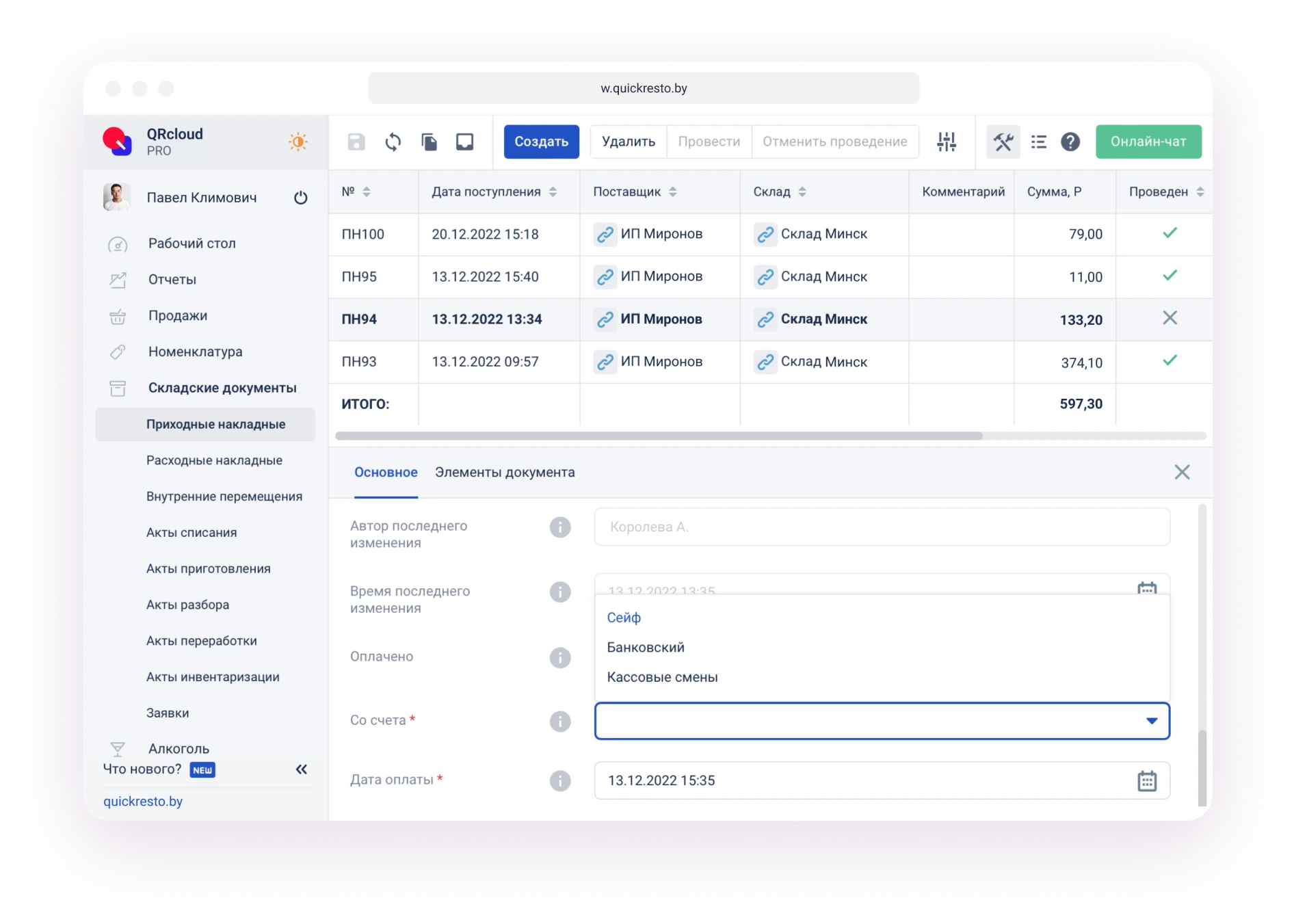 Схема зала, заказы, бонусы в CRM, чеки, 3 типа оплат