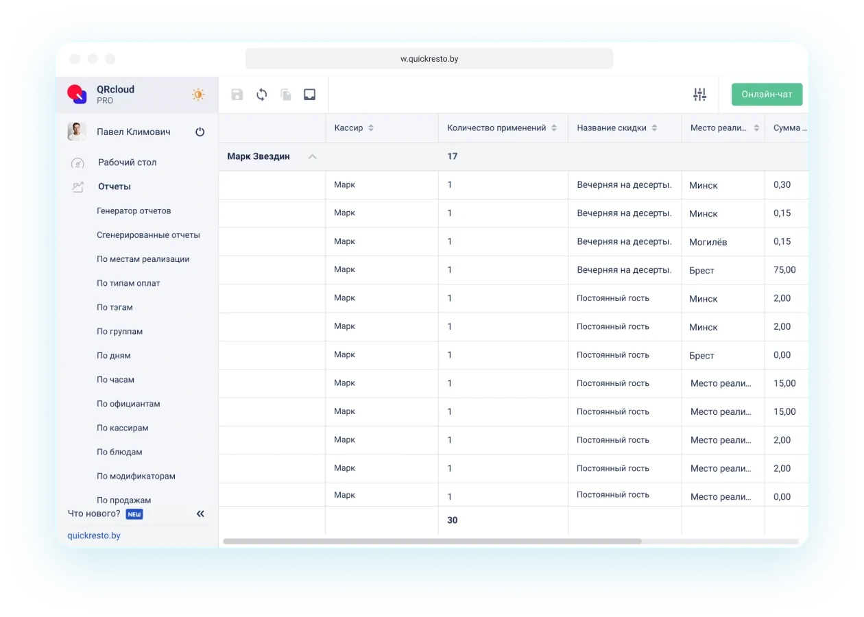 Схема зала, заказы, бонусы в CRM, чеки, 3 типа оплат
